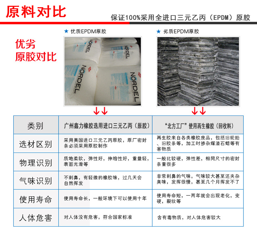 材質品牌: 乙丙膠(美國陶氏、德國朗盛、日本三井等) 硅 膠(南京東爵、江西紅葉、上海道康寧等)
